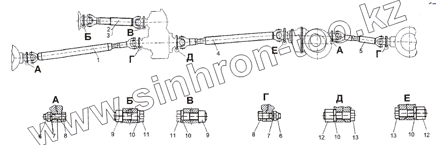 Каталог запасных частей к технике: МЗКТ-74171. Установка карданных валов