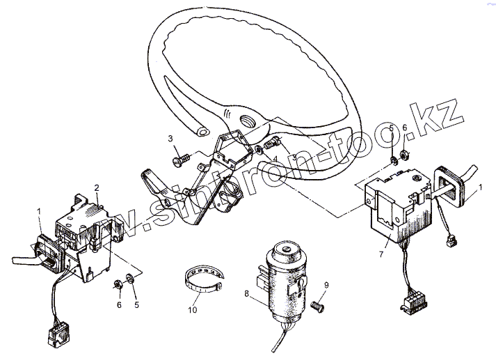 Каталог запасных частей к технике: МЗКТ-74171. Установка переключателей на рулевой колонке