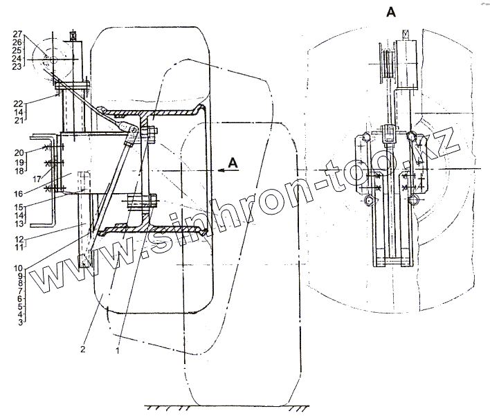 Каталог запасных частей к технике: МЗКТ-74171. Установка подъемника запасного колеса