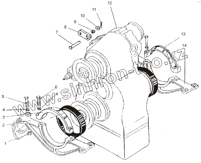 Каталог запасных частей к технике: МЗКТ-74171. Установка раздаточной коробки