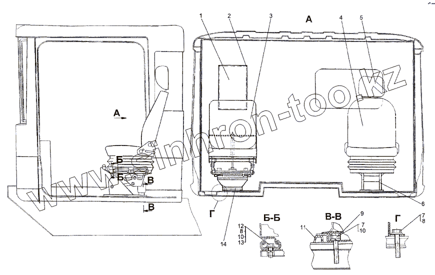 Каталог запасных частей к технике: МЗКТ-74171. Установка сидений