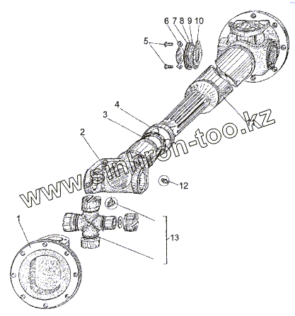 Каталог запасных частей к технике: МЗКТ-74171. Вал карданный 80071-2227010