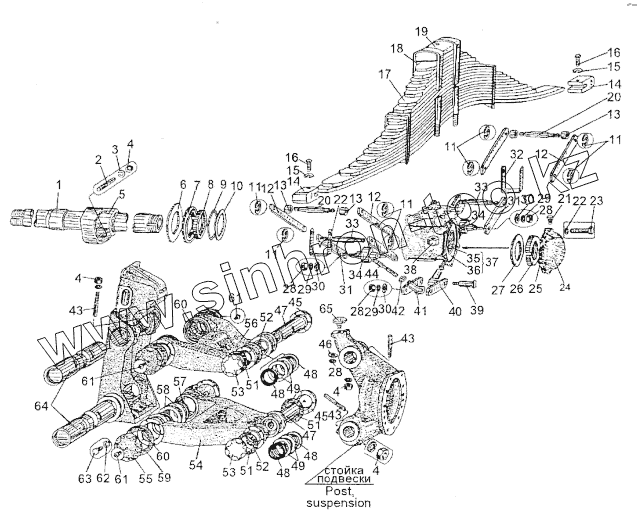 Каталог запасных частей к технике: МЗКТ-74296. Подвеска задняя 74131-2910010