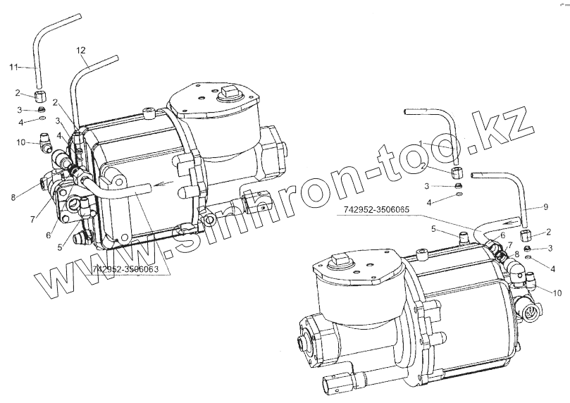 Каталог запасных частей к технике: МЗКТ-74296. Присоединительная арматура к главным тормозным цилиндрам