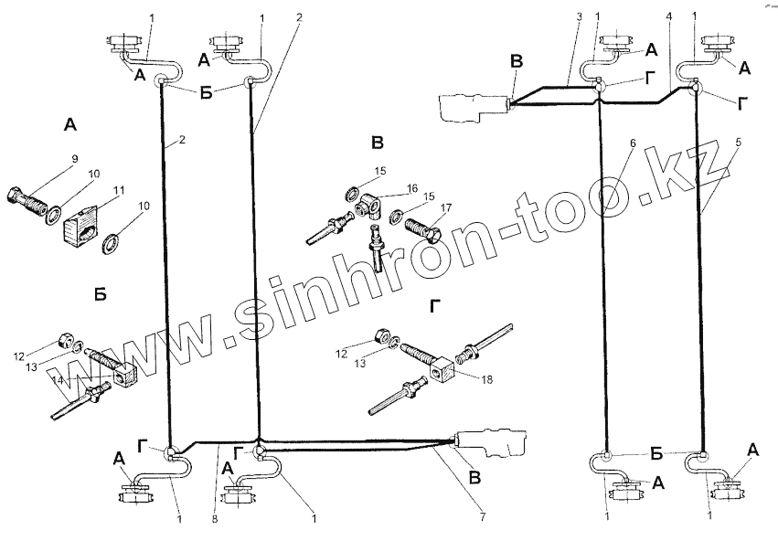 Каталог запасных частей к технике: МЗКТ-74296. Трубопроводы гидравлической системы тормозов