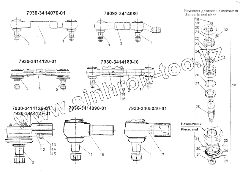 Каталог запасных частей к технике: МЗКТ-74296. Тяги и наконечники