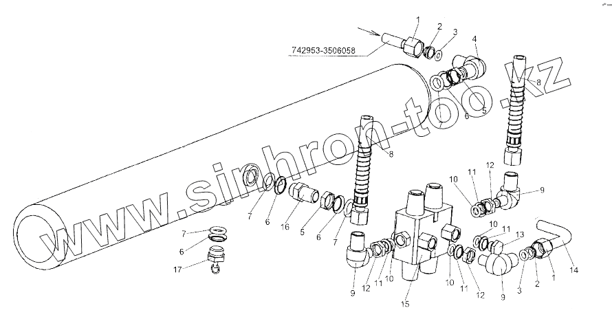 Каталог запасных частей к технике: МЗКТ-74296. Установка клапана защитного