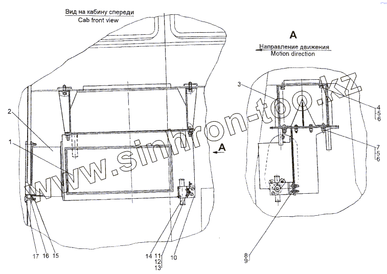 Каталог запасных частей к технике: МЗКТ-74296. Установка отопителя