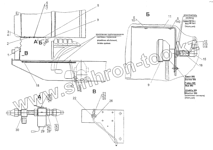Каталог запасных частей к технике: МЗКТ-74296. Установка пневмосигнала