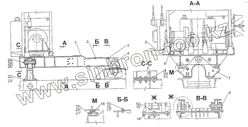 Каталог запасных частей к технике: МЗКТ-74296. Установка подрамника и лебедки