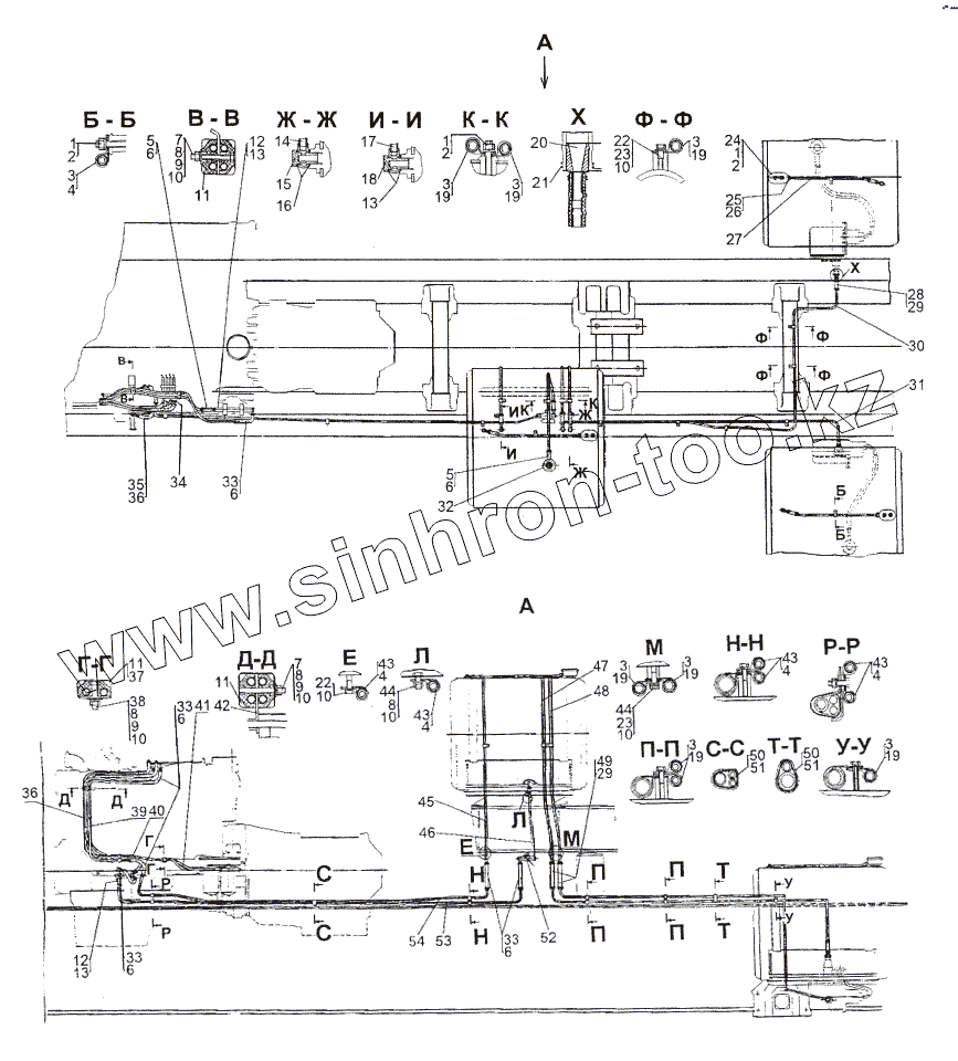 Каталог запасных частей к технике: МЗКТ-74296. Установка топливопроводов