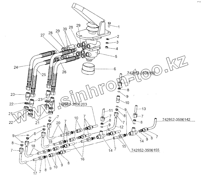 Каталог запасных частей к технике: МЗКТ-74296. Установка тормозного крана