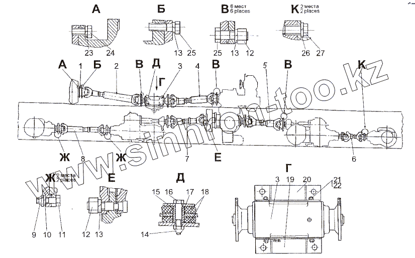 Каталог запасных частей к технике: МЗКТ-74296. Установка валов трансмиссионных