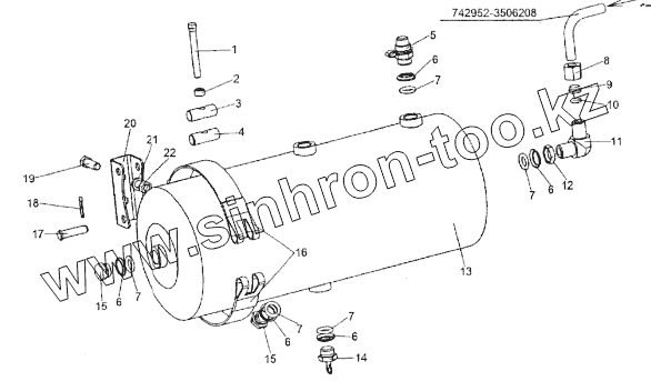 Каталог запасных частей к технике: МЗКТ-74296. Установка воздушного баллона потребителей