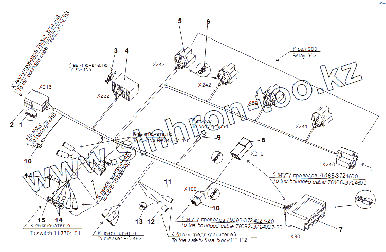 Каталог запасных частей к технике: МЗКТ-7429. Жгут проводов 75165-3724216