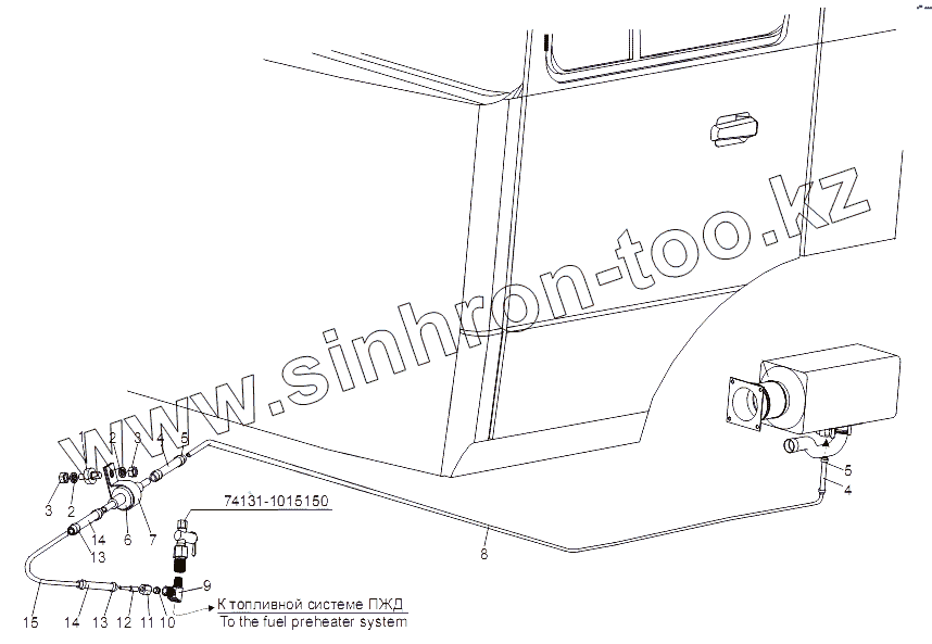 Каталог запасных частей к технике: МЗКТ-751652. Установка топливопроводов независимого отопителя