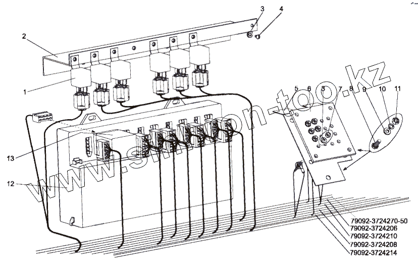 Каталог запасных частей к технике: МЗКТ-75165. Установка блока предохранителей и реле