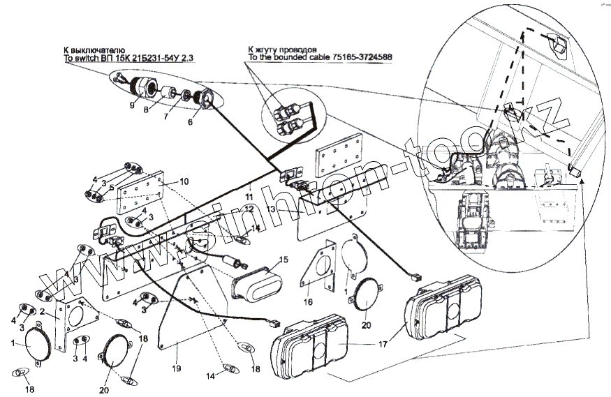 Каталог запасных частей к технике: МЗКТ-75165. Установка задних фонарей