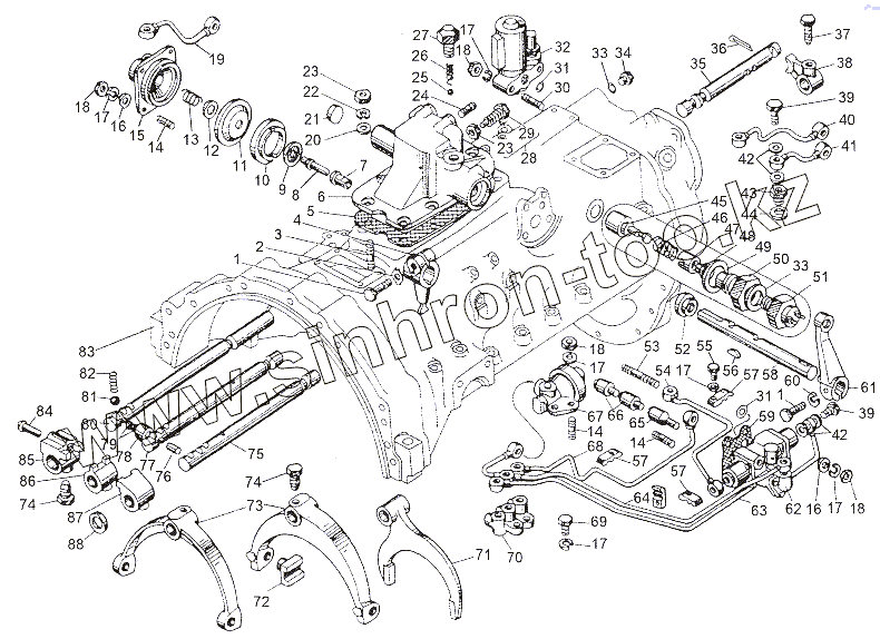 Каталог запасных частей к технике: МЗКТ-79011. Механизм переключения передач и опора рычага
