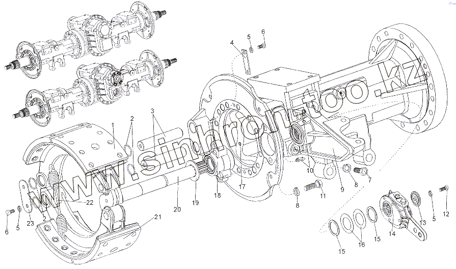 Каталог запасных частей к технике: МЗКТ-79011. Привод тормозов задних мостов
