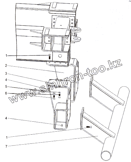 Каталог запасных частей к технике: МЗКТ-79011. Установка бруса противоподкатного