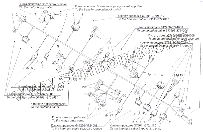 Каталог запасных частей к технике: МЗКТ-79011. Жгут проводов Э79011-3724008