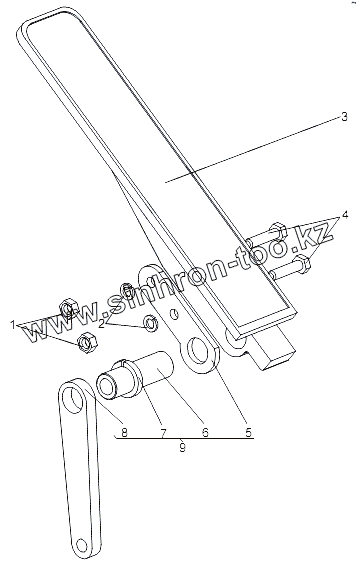 Каталог запасных частей к технике: МЗКТ-79091. Педаль с втулкой и рычагом 74133-1108006