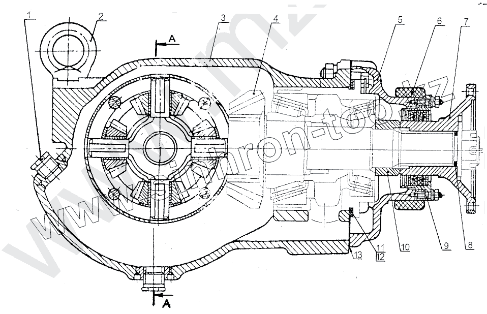 Каталог запасных частей к технике: МЗКТ-79091. Редуктор 1-го моста