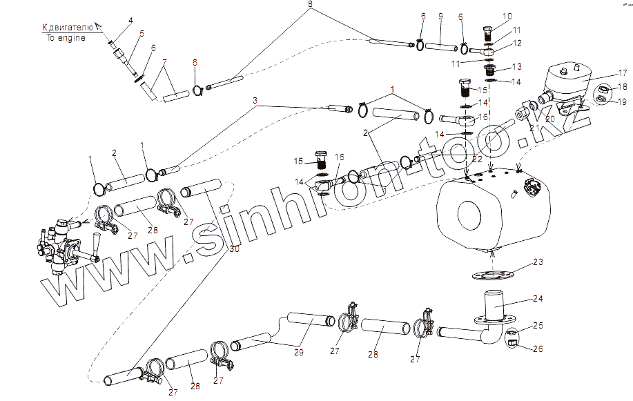 Каталог запасных частей к технике: МЗКТ-79091. Топливопроводы левого топливного бака