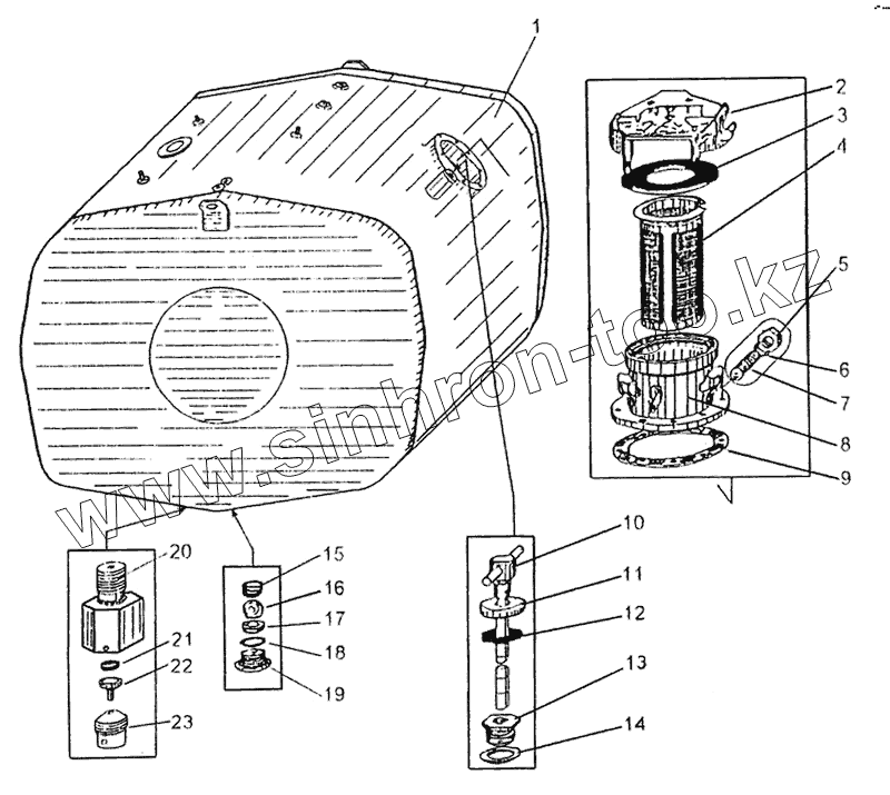 Каталог запасных частей к технике: МЗКТ-79092. Бак топливный