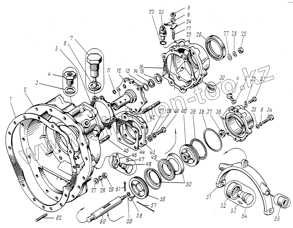 Каталог запасных частей к технике: МЗКТ-79092. Детали коробки передач