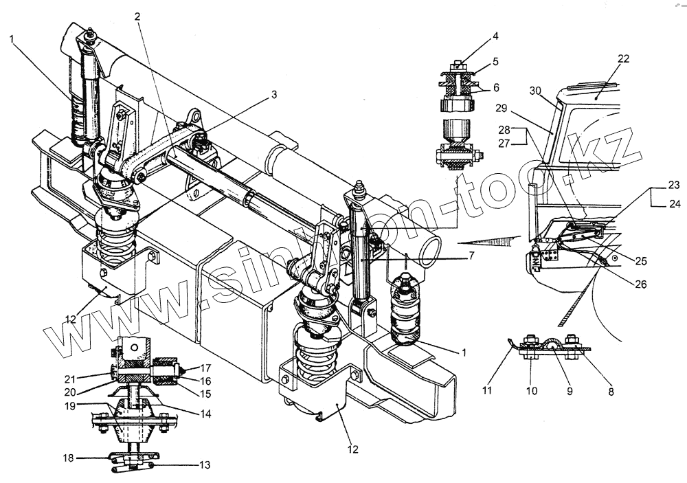 Каталог запасных частей к технике: МЗКТ-79092. Кабина. Подвеска кабины