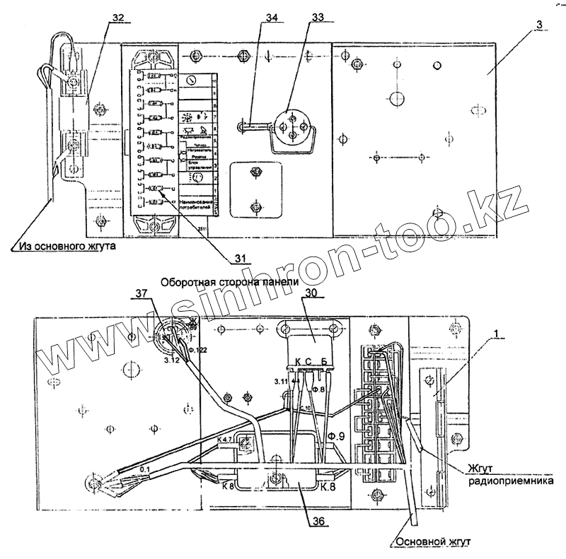 Каталог запасных частей к технике: МЗКТ-79092. Панель блоков предохранителей и реле