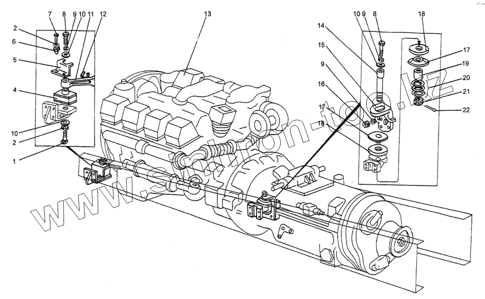 Каталог запасных частей к технике: МЗКТ-79092. Подвеска двигателя