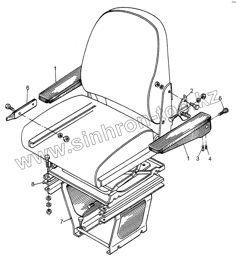 Каталог запасных частей к технике: МЗКТ-79092. Установка переднего сиденья и поручней