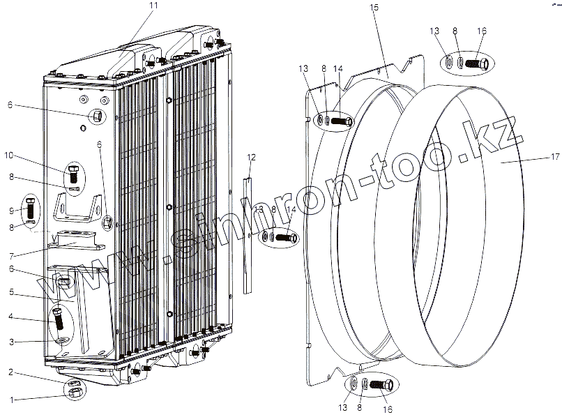 Каталог запасных частей к технике: МЗКТ-79092 (нов.). Установка радиатора