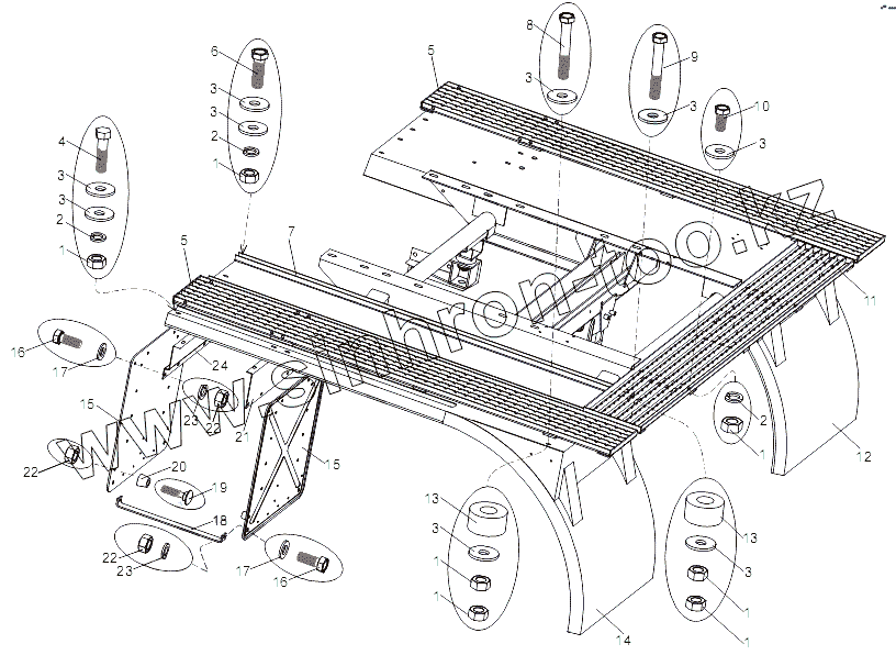 Каталог запасных частей к технике: МЗКТ-79092 (нов.). Установка задних крыльев и подножек
