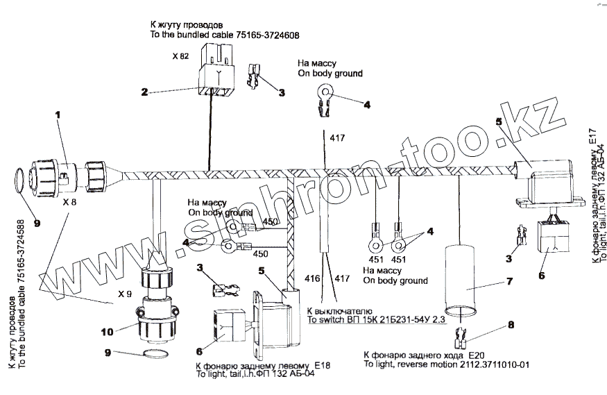 Каталог запасных частей к технике: МЗКТ-79092 (нов.). Жгут проводов 75165-3724026