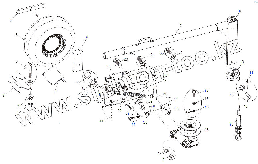 Каталог запасных частей к технике: МЗКТ-79096. Установка подъемника запасного колеса