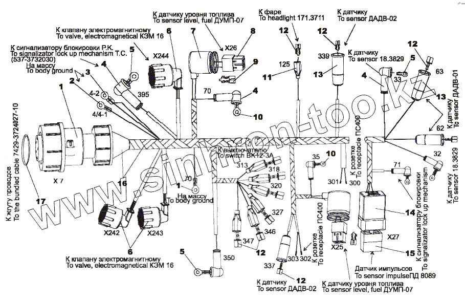 Каталог запасных частей к технике: МЗКТ-79096. Жгут проводов 7429-3724584-10