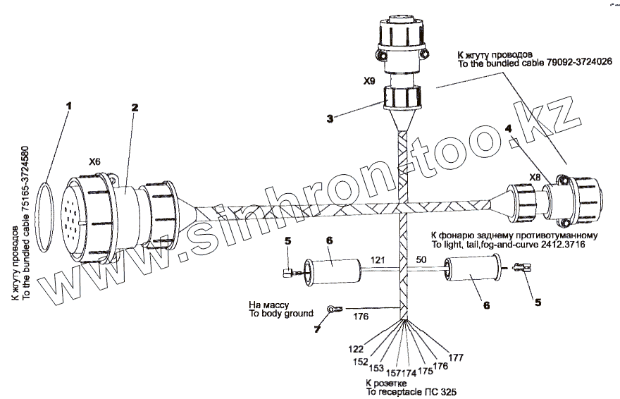 Каталог запасных частей к технике: МЗКТ-79096. Жгут проводов 75165-3724588
