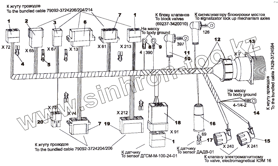 Каталог запасных частей к технике: МЗКТ-79096. Жгут проводов 79092-3724027-10