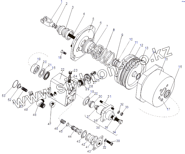Каталог запасных частей к технике: МЗКТ-79097. Усилитель пневмогидравлический 69237-1609200-10