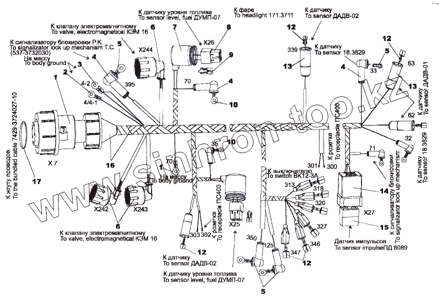 Каталог запасных частей к технике: МЗКТ-79097. Жгут проводов 79092-3724584-10