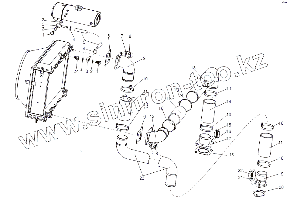 Каталог запасных частей к технике: МЗКТ-7930-200. Подсоединение трубопроводов к радиатору