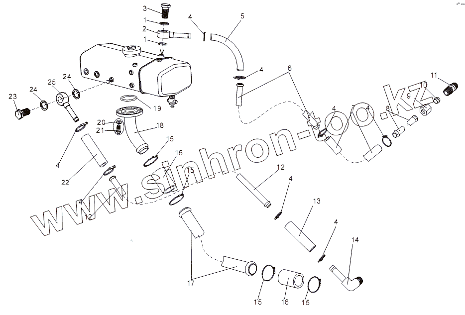 Каталог запасных частей к технике: МЗКТ-7930-200. Подсоединение трубопроводов к расширительному бачку