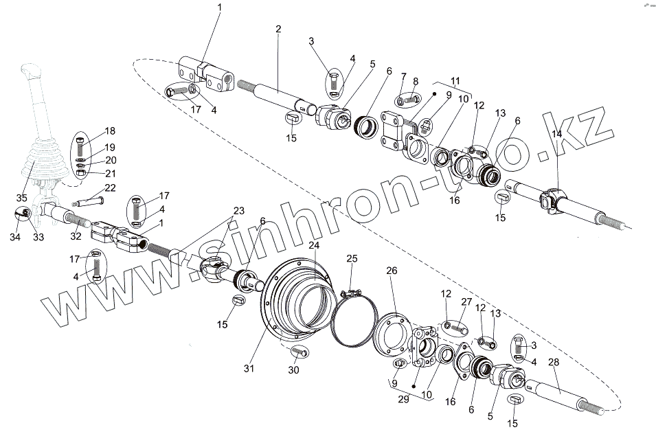 Каталог запасных частей к технике: МЗКТ-7930-200. Привод переключения передач (передний контур)