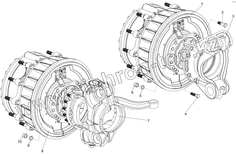Каталог запасных частей к технике: МЗКТ-7930-200. Ступица передняя, ступица колеса со стойкой