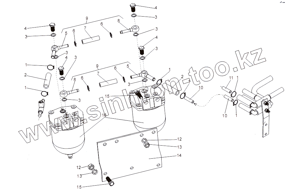 Каталог запасных частей к технике: МЗКТ-7930-200. Топливопроводы фильтров грубой очистки