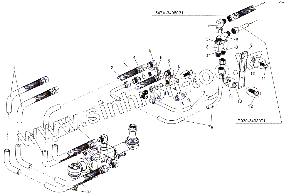 Каталог запасных частей к технике: МЗКТ-7930-200. Трубопроводы и шланги распределителя